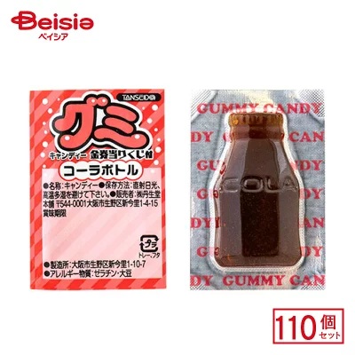 やおきんの商品。駄菓子屋などで見かけることが多いコーラの形をしたグミです。当たりくじつき。