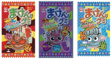 グー、チョキ、パーの手の形をしており、面白い見た目で子供を中心に大人気なお菓子「まけんグミ」。